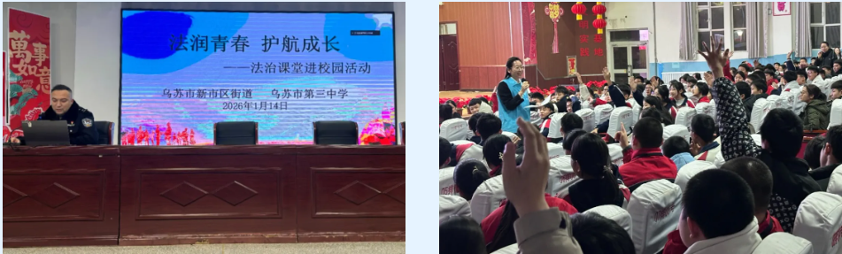 近日,塔城地区乌苏市新市区司法所联合派出所开展“法润青春 护航成长”法治进校园活动,为辖区学子带来一堂生动的法治安全课。警长结合新修订的治安管理处罚法,解读与校园生活、假期出行相关的法律条款,阐明扰乱公共秩序、侵犯人身权利等行为的法律后果,聚焦网络交易、兼职刷单等类型诈骗,通过案例剖析诈骗手法,传授“不听、不信、不转账”防诈口诀,普法志愿者逐一解答青少年疑问,并为积极参与答题者发放奖品,以“普法 安全”相结合方式,进一步提升青少年法治意识和自护能力。
