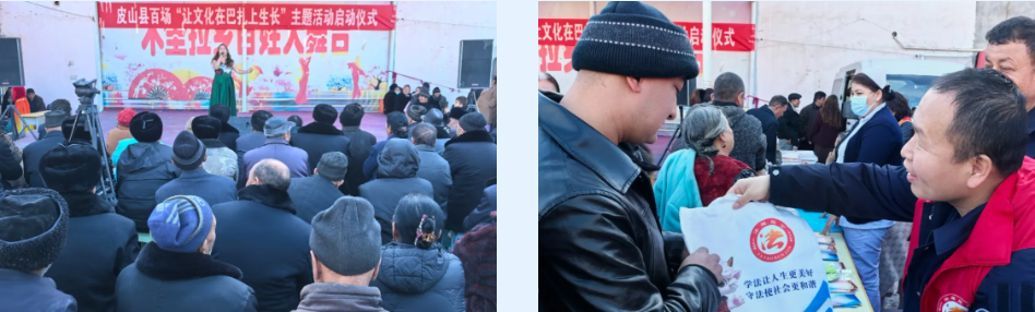 近日,和田地区皮山县司法局联合县委宣传部、文旅局、县卫健委、妇联、团委、科技局、科协及木奎拉乡等多部门,在“巴扎”开展“送法下乡”普法宣传志愿服务活动。工作人员将歌曲、舞蹈、情景剧等精彩文艺节目巧妙融入法治元素,通过悬挂横幅、设置咨询台、发放普法大礼包等形式,向过往群众普及民法典、法律援助法、法治宣传教育法、家庭教育促进法等法律法规,结合案例讲解婚姻纠纷、民间借贷、邻里矛盾等问题,告知依法维权具体途径、办理流程及注意事项,有效提升群众法律素养和法治意识,更以法治力量凝人心、聚合力,进一步铸牢中华民族共同体意识。